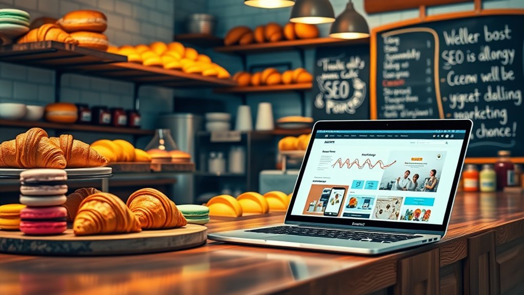 This data-driven approach guarantees ongoing relevance in search results, enabling bakeries to remain competitive and responsive to market demands. By prioritizing these key strategies, bakeries can successfully enhance their online presence and attract a loyal customer base.