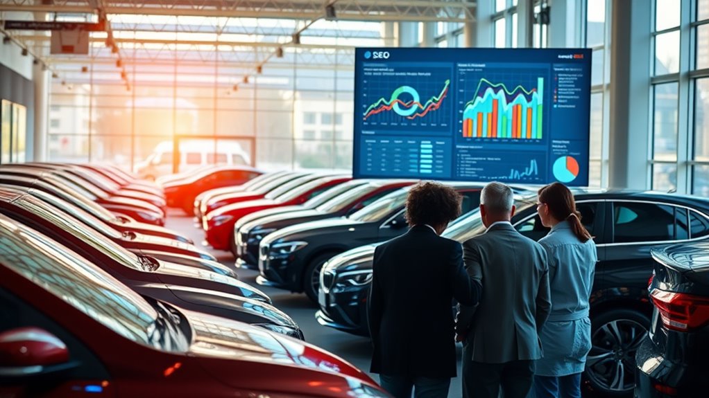 Additionally, integrating local keywords, including the dealership's city or region, enhances local SEO efforts, guaranteeing increased visibility in geographically relevant searches.